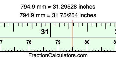 Here is how to convert 794.9 mm to inches. We will give you the fractional answer, the decimal answer, and illustrate the answer on our tape measure.