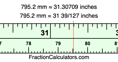 Here is how to convert 795.2 mm to inches. We will give you the fractional answer, the decimal answer, and illustrate the answer on our tape measure.