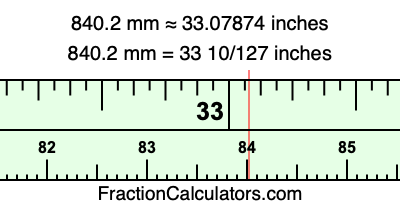 Here is how to convert 840.2 mm to inches. We will give you the fractional answer, the decimal answer, and illustrate the answer on our tape measure.