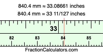 One millimeter is equal to 5/127 inches, and 840.4 as a fraction is 4202/5. Therefore, to get the fractional answer to 840.4 mm in inches, we multiply 4202/5 by 5/127 and simplify if necessary.