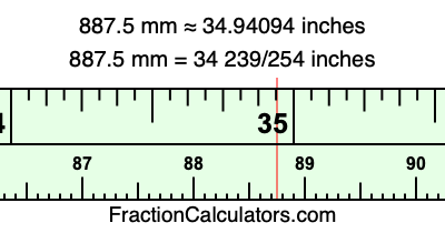 One millimeter is equal to 5/127 inches, and 887.5 as a fraction is 1775/2. Therefore, to get the fractional answer to 887.5 mm in inches, we multiply 1775/2 by 5/127 and simplify if necessary.
