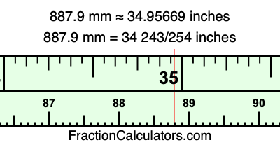 Here is how to convert 887.9 mm to inches. We will give you the fractional answer, the decimal answer, and illustrate the answer on our tape measure.