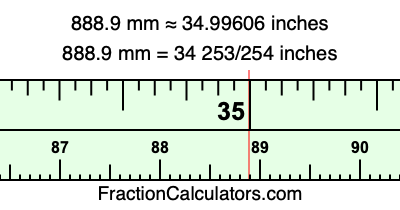 Here is how to convert 888.9 mm to inches. We will give you the fractional answer, the decimal answer, and illustrate the answer on our tape measure.