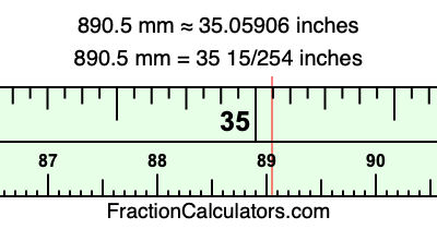 One millimeter is equal to 5/127 inches, and 890.5 as a fraction is 1781/2. Therefore, to get the fractional answer to 890.5 mm in inches, we multiply 1781/2 by 5/127 and simplify if necessary.