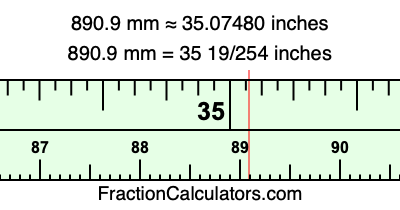 Here is how to convert 890.9 mm to inches. We will give you the fractional answer, the decimal answer, and illustrate the answer on our tape measure.