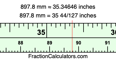 One millimeter is equal to 5/127 inches, and 897.8 as a fraction is 4489/5. Therefore, to get the fractional answer to 897.8 mm in inches, we multiply 4489/5 by 5/127 and simplify if necessary.