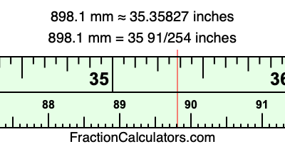 One millimeter is equal to 5/127 inches, and 898.1 as a fraction is 8981/10. Therefore, to get the fractional answer to 898.1 mm in inches, we multiply 8981/10 by 5/127 and simplify if necessary.