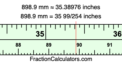 Here is how to convert 898.9 mm to inches. We will give you the fractional answer, the decimal answer, and illustrate the answer on our tape measure.