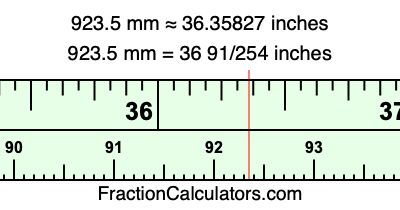 One millimeter is equal to 5/127 inches, and 923.5 as a fraction is 1847/2. Therefore, to get the fractional answer to 923.5 mm in inches, we multiply 1847/2 by 5/127 and simplify if necessary.