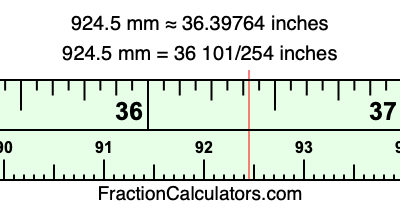 One millimeter is equal to 5/127 inches, and 924.5 as a fraction is 1849/2. Therefore, to get the fractional answer to 924.5 mm in inches, we multiply 1849/2 by 5/127 and simplify if necessary.