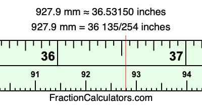 Here is how to convert 927.9 mm to inches. We will give you the fractional answer, the decimal answer, and illustrate the answer on our tape measure.