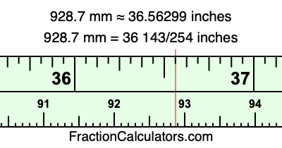 Here is how to convert 928.7 mm to inches. We will give you the fractional answer, the decimal answer, and illustrate the answer on our tape measure.