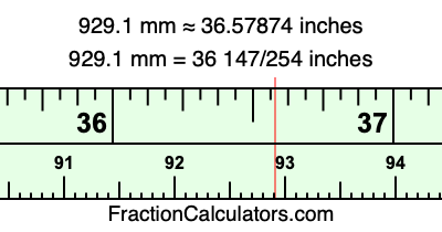 Here is how to convert 929.1 mm to inches. We will give you the fractional answer, the decimal answer, and illustrate the answer on our tape measure.