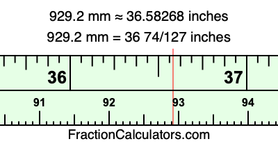 Here is how to convert 929.2 mm to inches. We will give you the fractional answer, the decimal answer, and illustrate the answer on our tape measure.