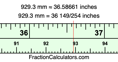 Here is how to convert 929.3 mm to inches. We will give you the fractional answer, the decimal answer, and illustrate the answer on our tape measure.