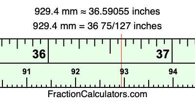 Here is how to convert 929.4 mm to inches. We will give you the fractional answer, the decimal answer, and illustrate the answer on our tape measure.