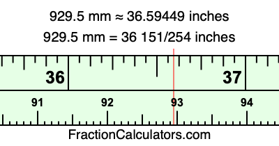 One millimeter is equal to 5/127 inches, and 929.5 as a fraction is 1859/2. Therefore, to get the fractional answer to 929.5 mm in inches, we multiply 1859/2 by 5/127 and simplify if necessary.