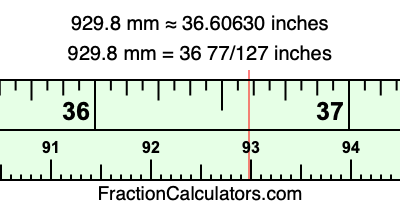 Here is how to convert 929.8 mm to inches. We will give you the fractional answer, the decimal answer, and illustrate the answer on our tape measure.