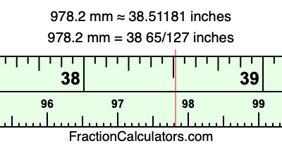 Here is how to convert 978.2 mm to inches. We will give you the fractional answer, the decimal answer, and illustrate the answer on our tape measure.