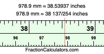 Here is how to convert 978.9 mm to inches. We will give you the fractional answer, the decimal answer, and illustrate the answer on our tape measure.