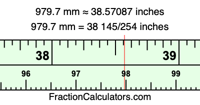 Here is how to convert 979.7 mm to inches. We will give you the fractional answer, the decimal answer, and illustrate the answer on our tape measure.