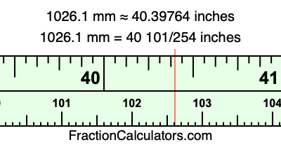 Here is how to convert 1026.1 mm to inches. We will give you the fractional answer, the decimal answer, and illustrate the answer on our tape measure.