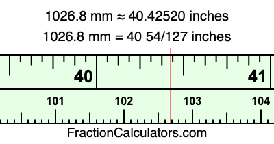 Here is how to convert 1026.8 mm to inches. We will give you the fractional answer, the decimal answer, and illustrate the answer on our tape measure.