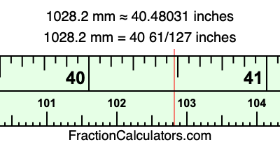 Here is how to convert 1028.2 mm to inches. We will give you the fractional answer, the decimal answer, and illustrate the answer on our tape measure.