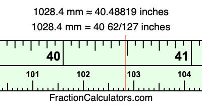 Here is how to convert 1028.4 mm to inches. We will give you the fractional answer, the decimal answer, and illustrate the answer on our tape measure.