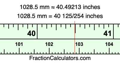 As promised above, we also have the answer to 1028.5 mm in inches in decimal form. Although the fractional answer above is exact, the decimal answer may be rounded if necessary: