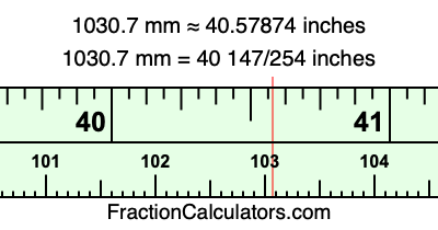 Here is how to convert 1030.7 mm to inches. We will give you the fractional answer, the decimal answer, and illustrate the answer on our tape measure.