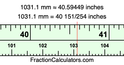 Here is how to convert 1031.1 mm to inches. We will give you the fractional answer, the decimal answer, and illustrate the answer on our tape measure.