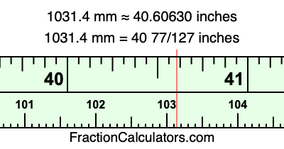 Here is how to convert 1031.4 mm to inches. We will give you the fractional answer, the decimal answer, and illustrate the answer on our tape measure.