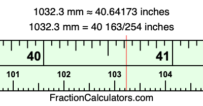 Here is how to convert 1032.3 mm to inches. We will give you the fractional answer, the decimal answer, and illustrate the answer on our tape measure.