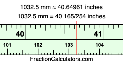 Here is how to convert 1032.5 mm to inches. We will give you the fractional answer, the decimal answer, and illustrate the answer on our tape measure.
