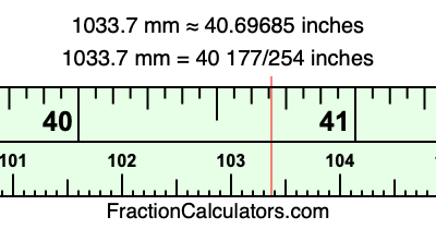 Here is how to convert 1033.7 mm to inches. We will give you the fractional answer, the decimal answer, and illustrate the answer on our tape measure.