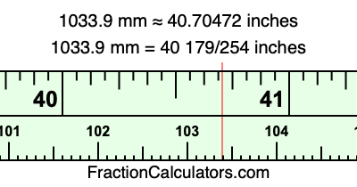 One millimeter is equal to 5/127 inches, and 1033.9 as a fraction is 10339/10. Therefore, to get the fractional answer to 1033.9 mm in inches, we multiply 10339/10 by 5/127 and simplify if necessary.