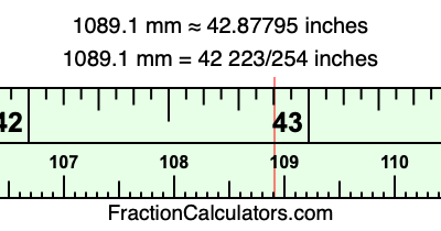 One millimeter is equal to 5/127 inches, and 1089.1 as a fraction is 10891/10. Therefore, to get the fractional answer to 1089.1 mm in inches, we multiply 10891/10 by 5/127 and simplify if necessary.
