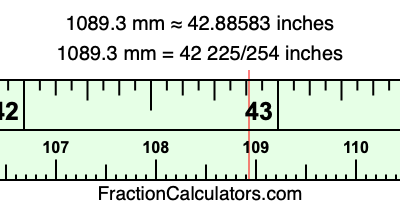 One millimeter is equal to 5/127 inches, and 1089.3 as a fraction is 10893/10. Therefore, to get the fractional answer to 1089.3 mm in inches, we multiply 10893/10 by 5/127 and simplify if necessary.