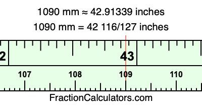 One millimeter is equal to 5/127 inches, and 1090 as a fraction is 1090/1. Therefore, to get the fractional answer to 1090 mm in inches, we multiply 1090/1 by 5/127 and simplify if necessary.