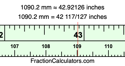 Here is how to convert 1090.2 mm to inches. We will give you the fractional answer, the decimal answer, and illustrate the answer on our tape measure.