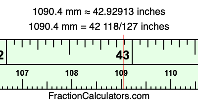 Here is how to convert 1090.4 mm to inches. We will give you the fractional answer, the decimal answer, and illustrate the answer on our tape measure.