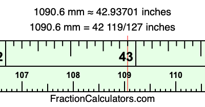 Here is how to convert 1090.6 mm to inches. We will give you the fractional answer, the decimal answer, and illustrate the answer on our tape measure.