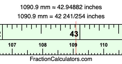Here is how to convert 1090.9 mm to inches. We will give you the fractional answer, the decimal answer, and illustrate the answer on our tape measure.