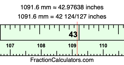 One millimeter is equal to 5/127 inches, and 1091.6 as a fraction is 5458/5. Therefore, to get the fractional answer to 1091.6 mm in inches, we multiply 5458/5 by 5/127 and simplify if necessary.