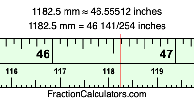 One millimeter is equal to 5/127 inches, and 1182.5 as a fraction is 2365/2. Therefore, to get the fractional answer to 1182.5 mm in inches, we multiply 2365/2 by 5/127 and simplify if necessary.