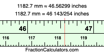 One millimeter is equal to 5/127 inches, and 1182.7 as a fraction is 11827/10. Therefore, to get the fractional answer to 1182.7 mm in inches, we multiply 11827/10 by 5/127 and simplify if necessary.