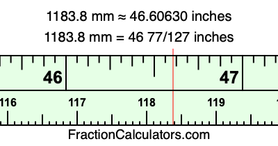Here is how to convert 1183.8 mm to inches. We will give you the fractional answer, the decimal answer, and illustrate the answer on our tape measure.