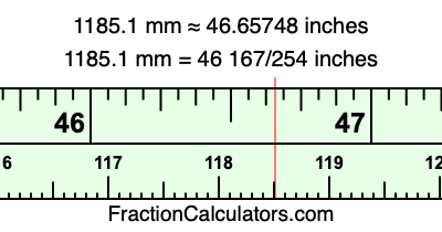 One millimeter is equal to 5/127 inches, and 1185.1 as a fraction is 11851/10. Therefore, to get the fractional answer to 1185.1 mm in inches, we multiply 11851/10 by 5/127 and simplify if necessary.