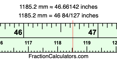 Here is how to convert 1185.2 mm to inches. We will give you the fractional answer, the decimal answer, and illustrate the answer on our tape measure.
